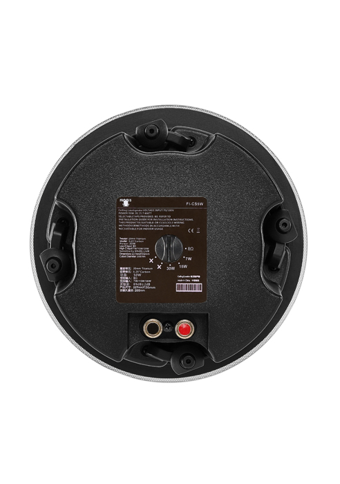 The ceiling speaker FI-CS5W is white, with an ABS housing and metal protecting grille.